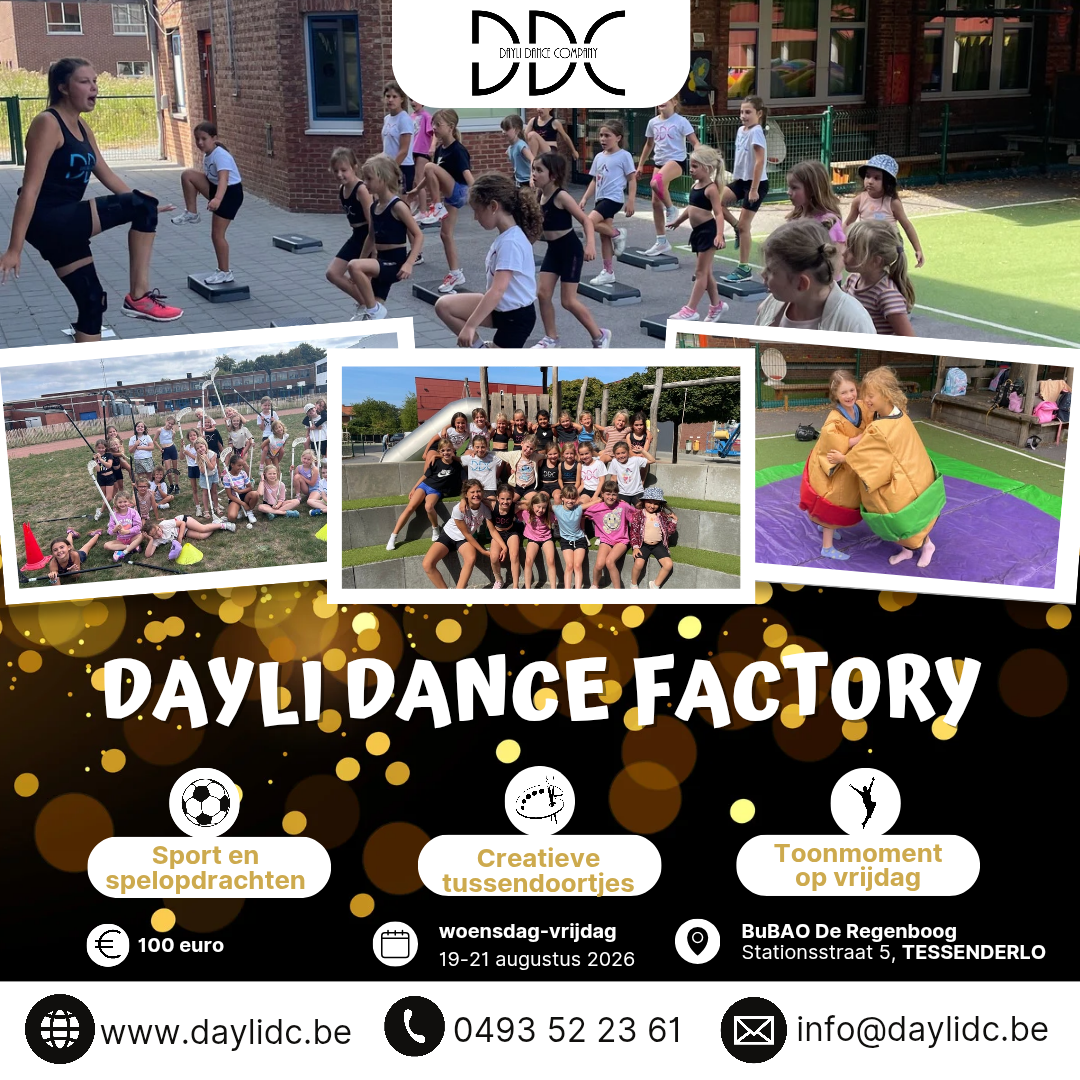 Droom jij ervan om later een danser, dokter, kok, brandweerman of een ander leuk beroep te worden? Dan is DDC Droomberoepen helemaal iets voor jou! Tijdens dit te gekke danskamp kruipen we elke dag in de huid van een ander droomberoep. We dansen, knutselen en spelen volop in dit fantasierijke thema. Het kamp gaat door van 09:00 tot 12:00 in BuBAO De Regenboog, Stationsstraat 5, 3980 Tessenderlo. Iedereen is welkom, of je nu lid bent of niet. Voor wie dat wenst, is er opvang voorzien van 08:30 tot 12:30, op voorwaarde dat je je hiervoor inschrijft. Vergeet zeker je sportieve kledij, een fles water en een lekker gezond tussendoortje niet mee te brengen. Er zijn twee groepen: groep 1 voor instap en 1ste kleuterklas en groep 2 voor 2de en 3de kleuterklas. Wil je graag in dezelfde groep zitten als je vriendje of vriendinnetje? Noteer dan de naam in het vakje ‘opmerkingen’ bij de inschrijving en wij zorgen ervoor dat jullie samen kunnen deelnemen. En het allerbeste? Voor slechts 50 euro beleef je drie dagen vol dans, plezier en droomberoepen!